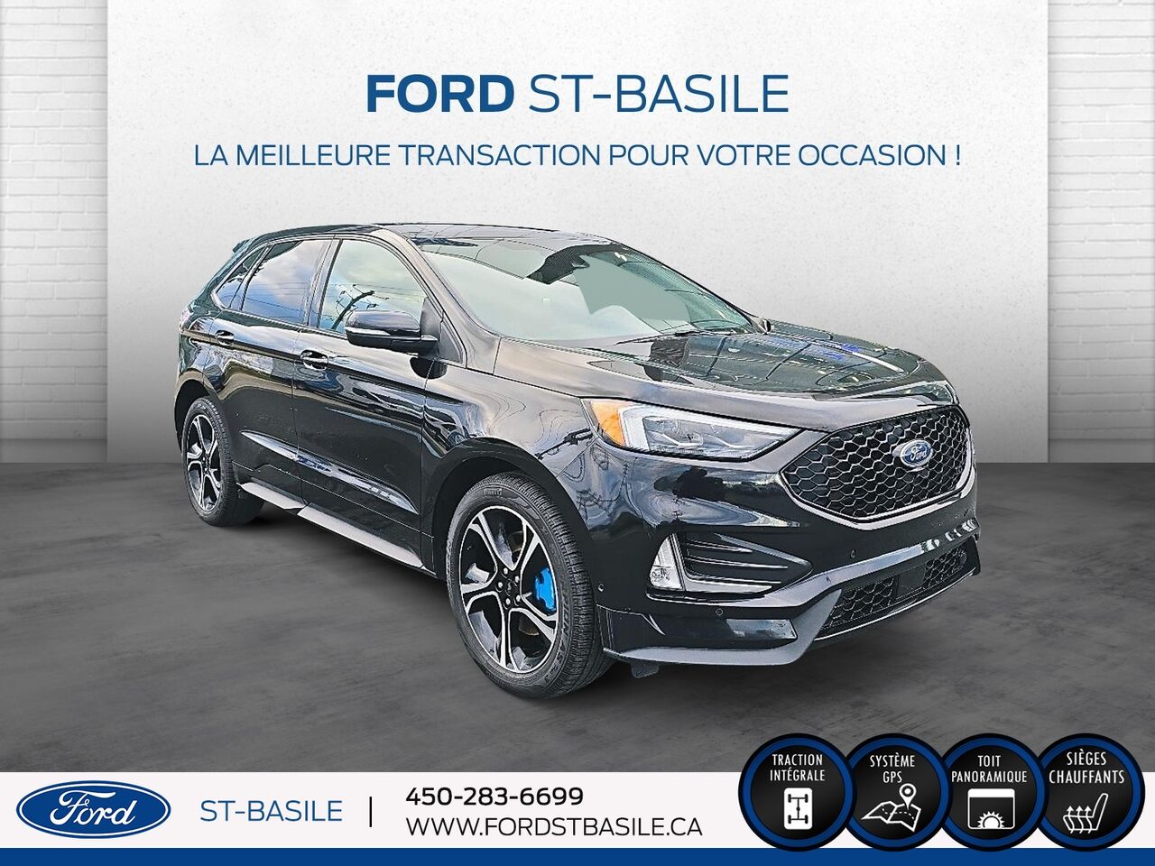 Visitez-nous chez **Ford St-Basile** au 107 Blvd. Sir-Wilfrid-Laurier à Saint-Basile-le-Grand, ou appelez-nous au (450) 283-6699 pour plus d’informations ou pour planifier votre essai routier.