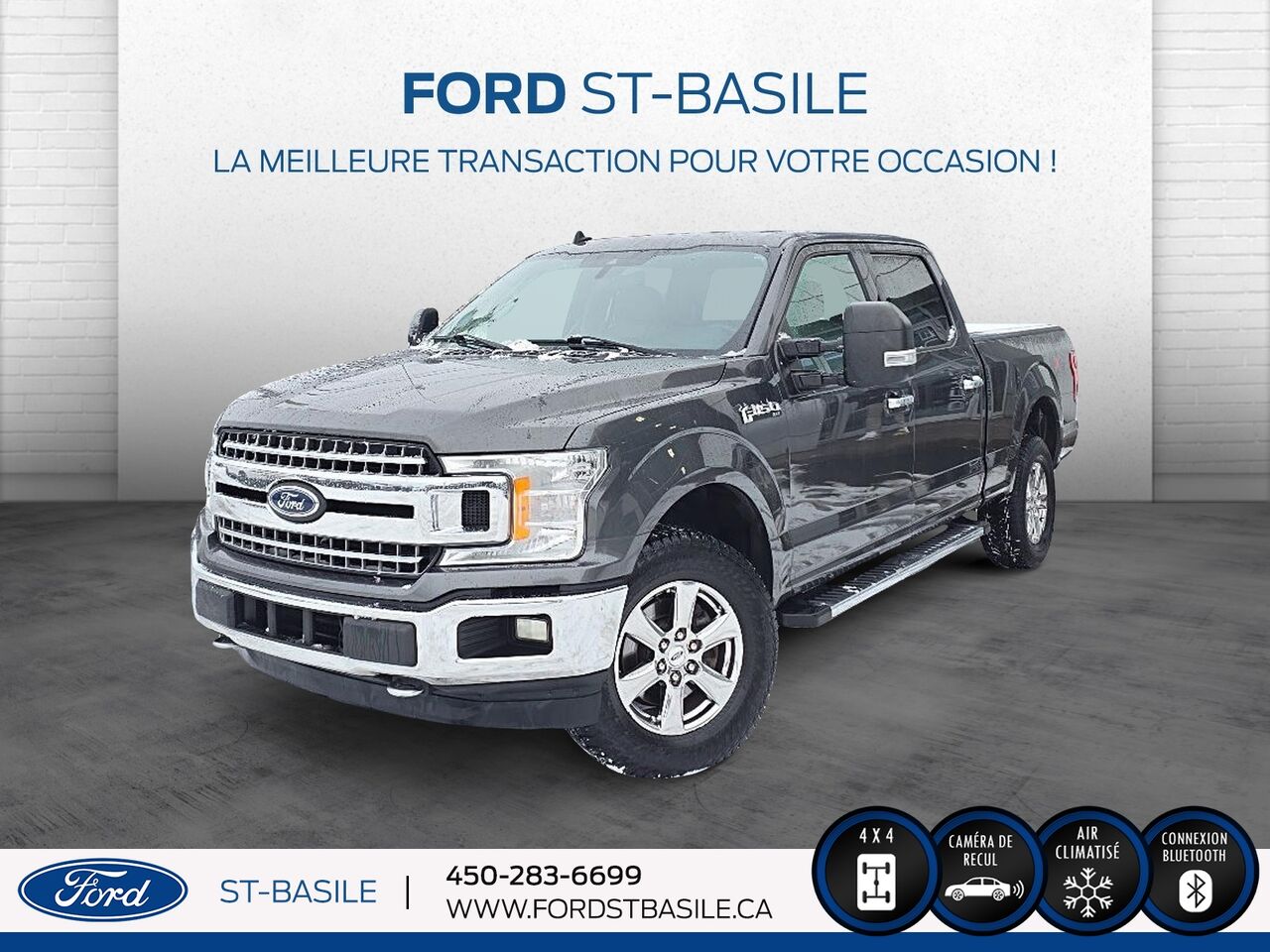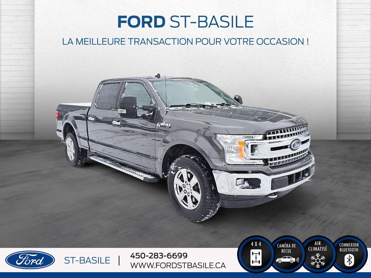 Venez découvrir ce Ford F-150 XLT à Ford St-Basile, situé au 107 Blvd. Sir-Wilfrid-Laurier, Saint-Basile-le-Grand, Quebec, J3N 1M2. Contactez-nous au (450) 283-6699 pour plus d'informations ou pour planifier un essai routier.
