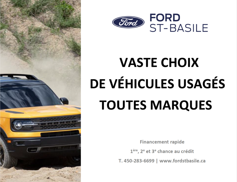 Situé à seulement 30 minutes de Montréal, près de St-Bruno-de-Montarville, Brossard, Ste-Julie, Beloeil, St-Hubert, Ford St-Basile vous accueil dans son nouveau concessionnaire construit en 2018, avec la nouvelle image Ford, qui offre un confort, un service de qualité et professionnel a tous ses clients.